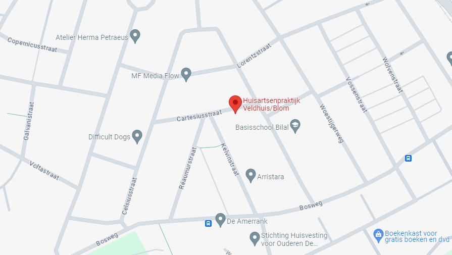 Route en Contact Huisartsenpraktijk Veldhuis/BlomCartesiusstraat 23817 XP AmersfoortPraktijk: 033-4328960Spoed: 033-7200911Dit e-mailadres wordt beveiligd tegen spambots. JavaScript dient ingeschakeld te zijn om het te bekijken. Plattegrond